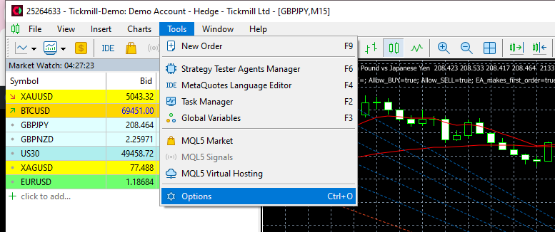 4. Make sure the Algo Trading button at the top of MT5 is ON (green)